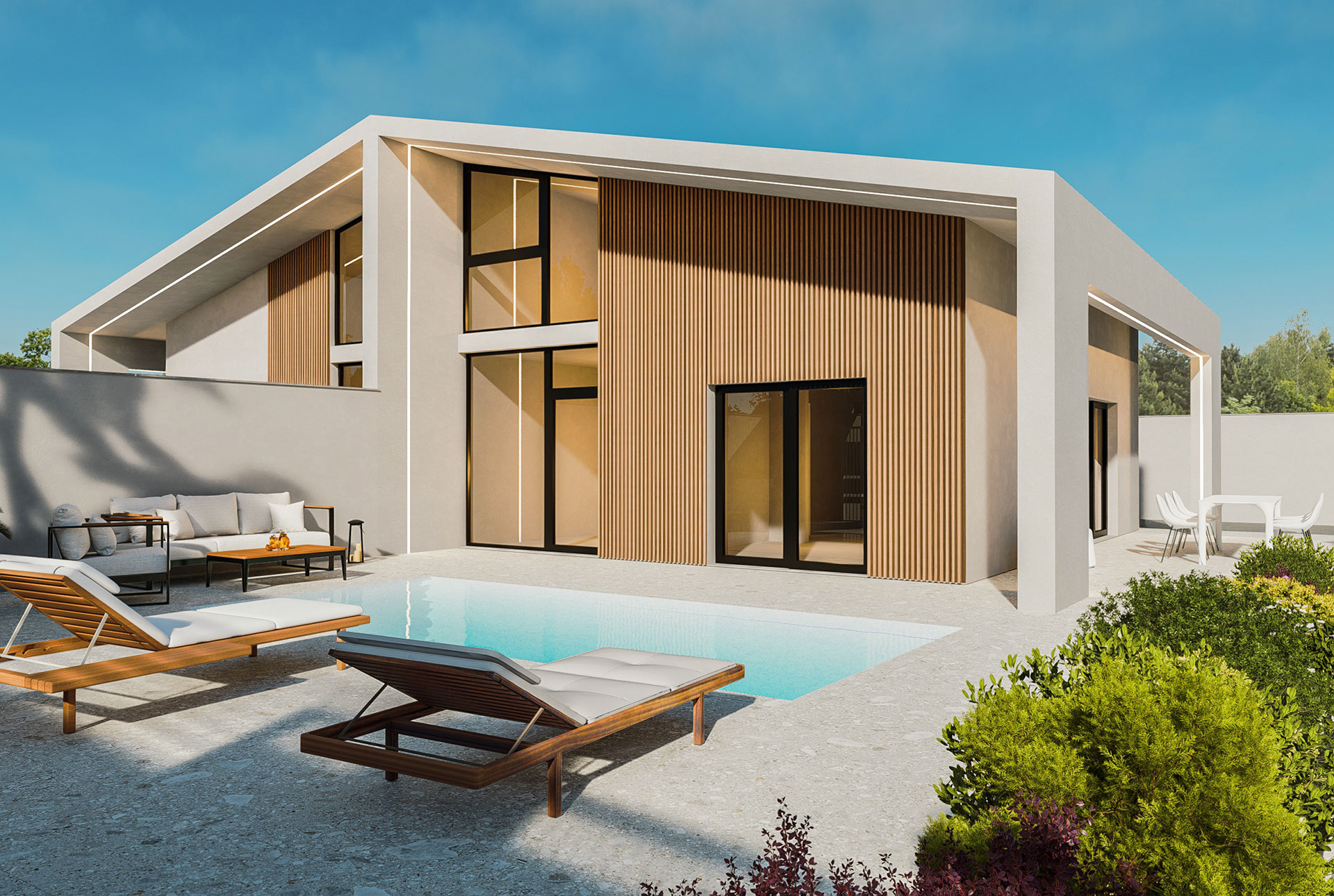 la nitidezza delle superfici, rendendo queste due ville consone alle esigenze dei nostri tempi.
